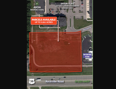 High-profile site in the heart of high growth/income trade area in Avon's US Hwy 36/Rockville Rd corridor in the Satori Pointe development anchored by the new YMCA Hendricks County, 269 Satori Flats (269 luxury apartment units), State Bank of Lizton and Cooper Hawk Restaurant/Winery.